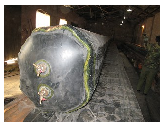 這里是現(xiàn)澆混凝土的施工情況。在橋梁上部結(jié)構(gòu)澆筑混凝土?xí)r應(yīng)該用充氣膠囊作為芯模板,制作空心的預(yù)制構(gòu)件,待混凝土凝固后,將充氣膠囊放氣取出,就形成了空心的預(yù)應(yīng)力梁板了,充氣膠囊圖示如下: