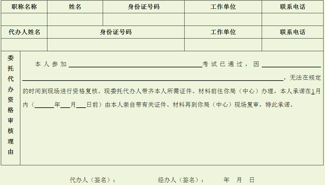 3.考生有效期內(nèi)的居民身份證或軍人證、學(xué)歷(位)證書原件和復(fù)印件各一份。在復(fù)核期限內(nèi),本人因事無法前往須委托他人送審的,要提交代辦委托書(附件4),并在之后一個(gè)月內(nèi),再由本人前往送審點(diǎn)送審。