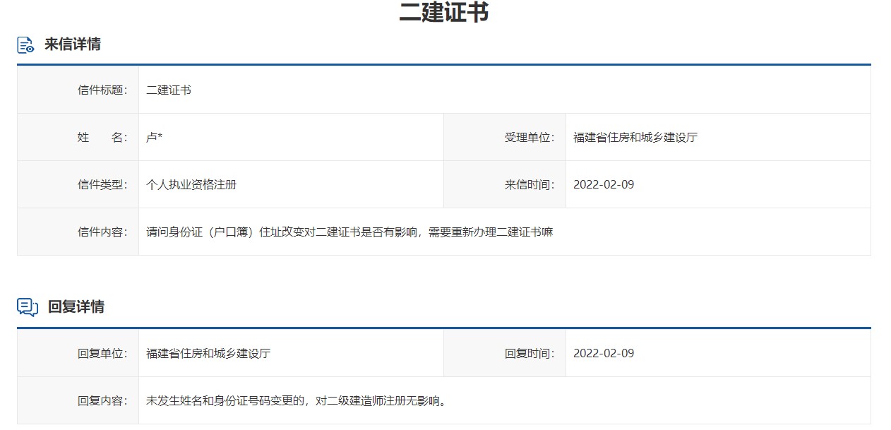 問題咨詢:請問身份證(戶口簿)住址改變對二建證書是否有影響,需要重新辦理二建證書嘛