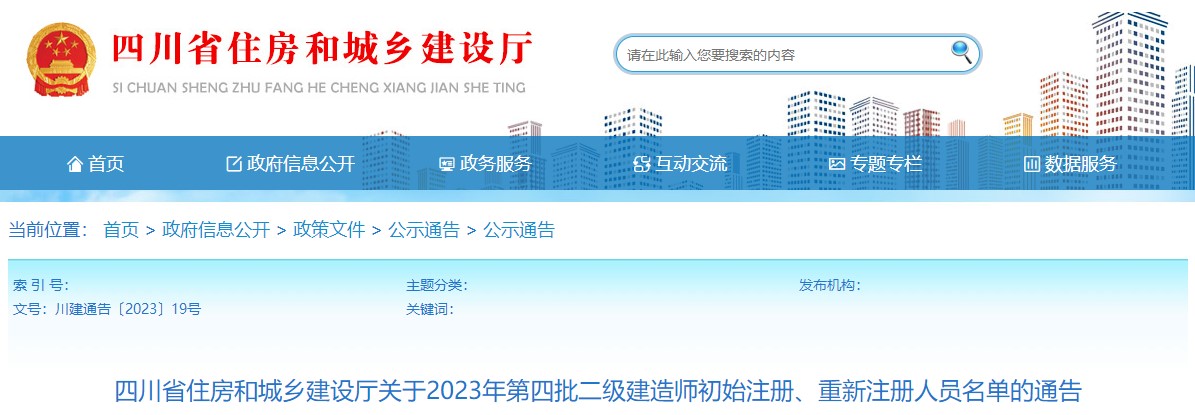 四川省住房和城鄉(xiāng)建設廳關于2023年第四批二級建造師初始注冊、重新注冊人員名單的通告
