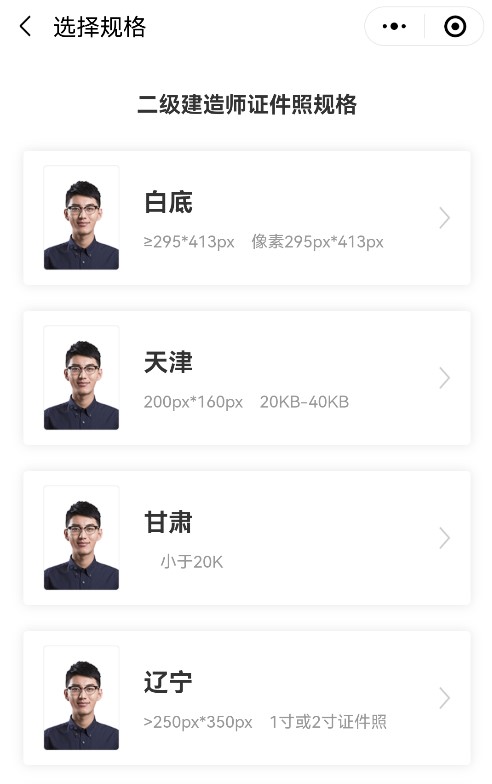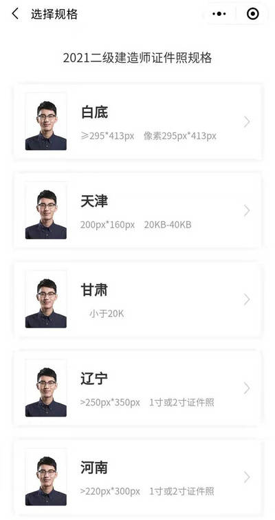 各地對二級建造師報名照片的要求略有不同,為幫助考生們解決證件照片制作的難題,網(wǎng)校為大家提供一個便捷免費的二級建造師報名照片制作小程序,再也不用去照相館花冤枉錢了!