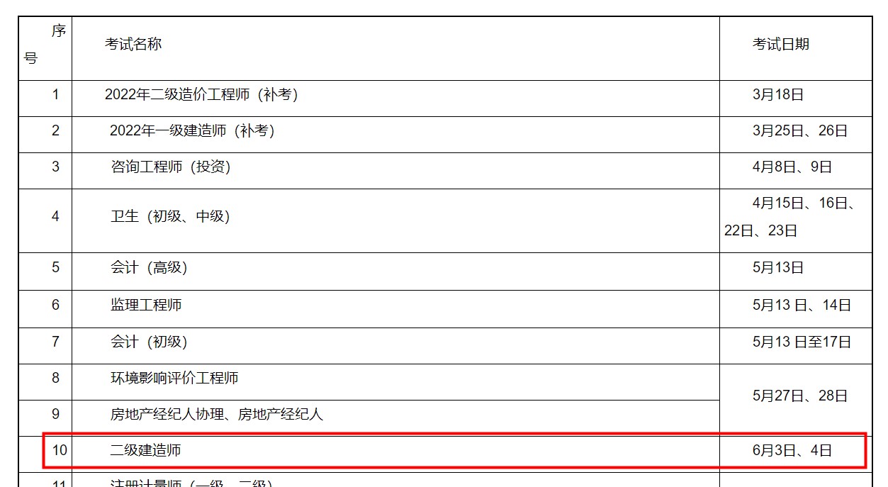 江蘇南京市、無錫市、徐州市、常州市、蘇州市、南通市、連云港市、淮安市、揚州市、鎮(zhèn)江市、泰州市、宿遷市2023年二級建造師考試時間已經(jīng)確定,江蘇南京市、無錫市、徐州市、常州市、蘇州市、南通市、連云港市、淮安市、揚州市、鎮(zhèn)江市、泰州市、宿遷市2023年二級建造師考試時間為:6月3、4日。