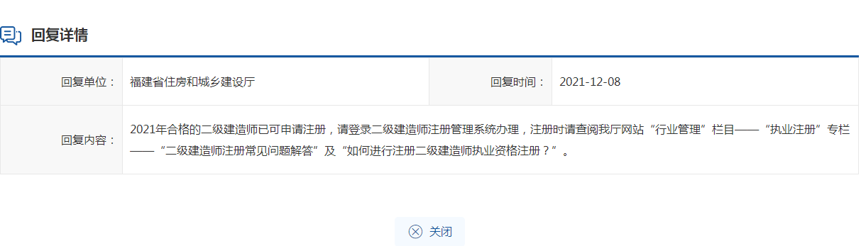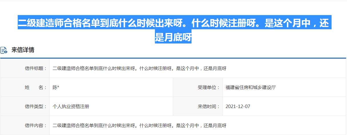 福建省回復(fù)二級建造師合格名單和注冊時間