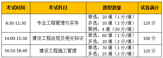2019年福建二級(jí)建造師考試題型題量: