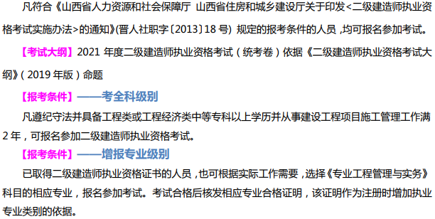 陽泉2021年二級(jí)建造師考試時(shí)間:2021年5月29日至5月30日