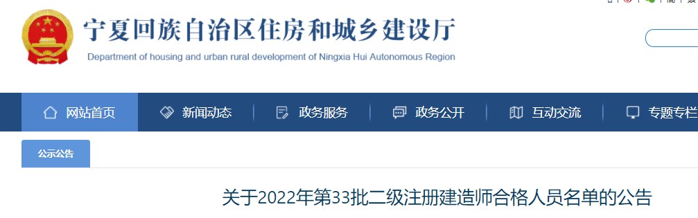 寧夏關(guān)于2022年第33批二級(jí)注冊(cè)建造師合格人員名單的公告