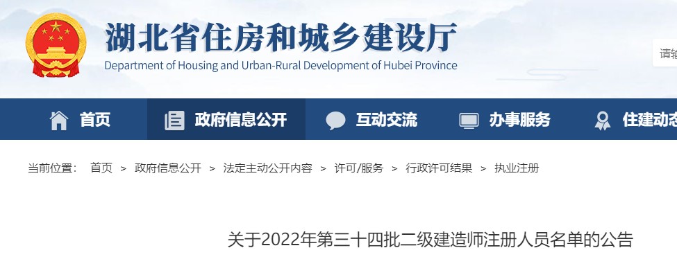 湖北關(guān)于2022年第三十四批二級(jí)建造師注冊(cè)人員名單的公告