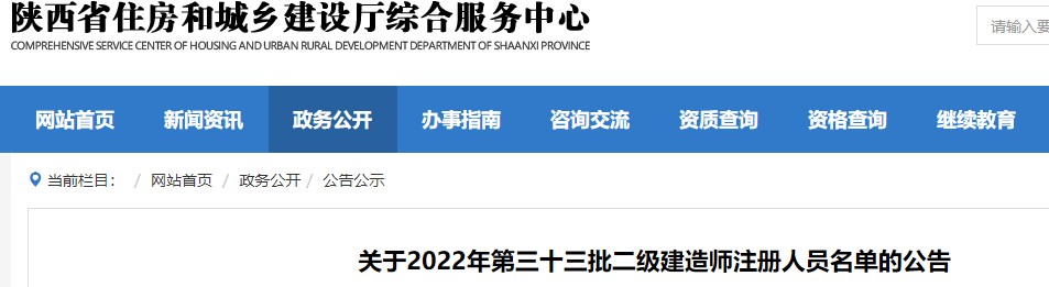 陜西?關于2022年第三十三批二級建造師注冊人員名單的公告