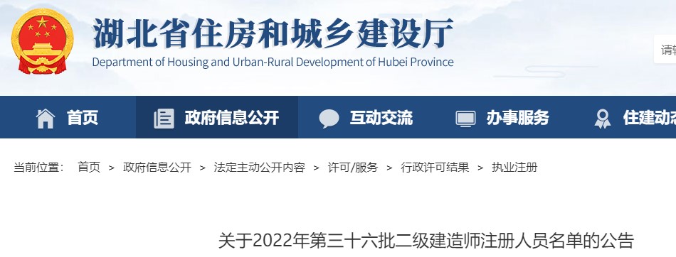 湖北省關(guān)于2022年第三十六批二級建造師注冊人員名單的公告