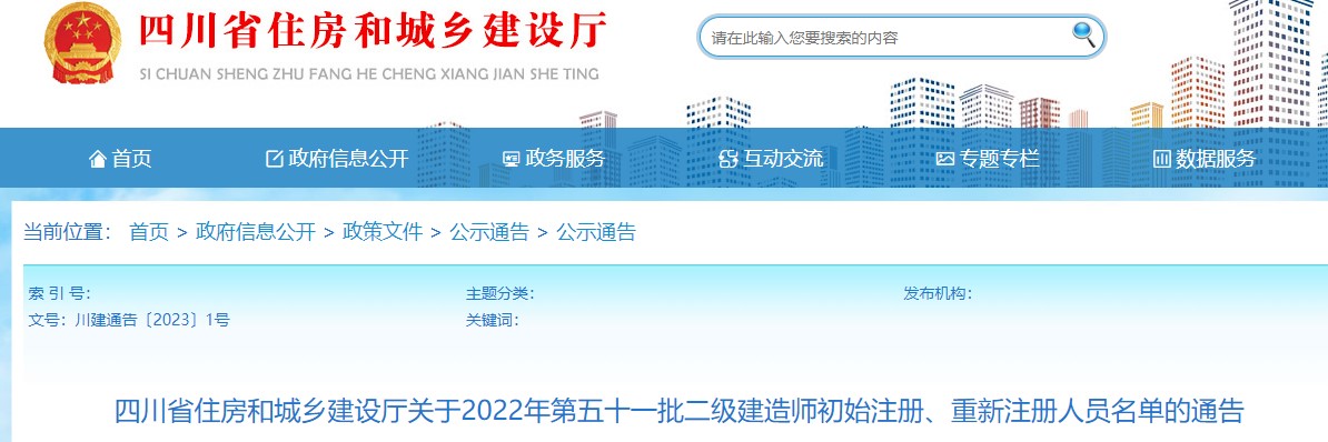 四川省住房和城鄉(xiāng)建設(shè)廳關(guān)于2022年第五十一批二級建造師初始注冊、重新注冊人員名單的通告
