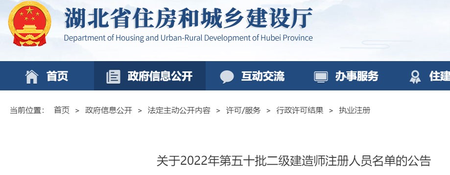 湖北省關(guān)于2022年第五十批二級(jí)建造師注冊(cè)人員名單的公告