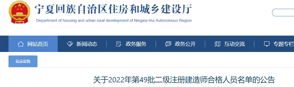 寧夏關(guān)于2022年第49批二級(jí)注冊(cè)建造師合格人員名單的公告