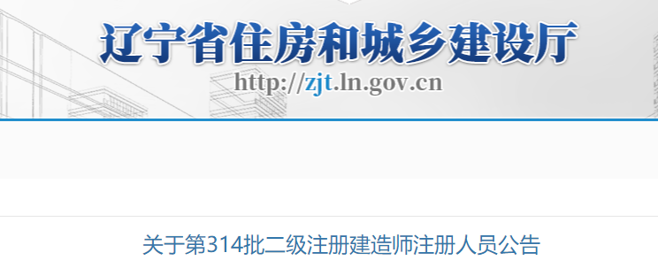 遼寧住建廳關(guān)于第314批二級注冊建造師注冊人員公告