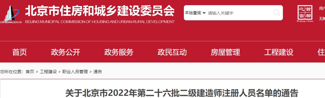 關(guān)于北京市2022年第二十六批二級建造師注冊人員名單的通告