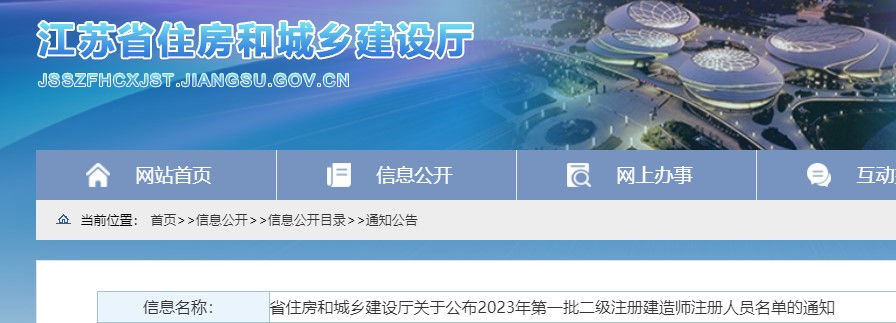 江蘇關(guān)于公布2023年第一批二級注冊建造師注冊人員名單的通知