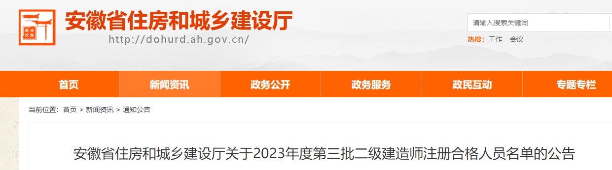 安徽省住房和城鄉(xiāng)建設(shè)廳關(guān)于2023年度第三批二級建造師注冊合格人員名單的公告