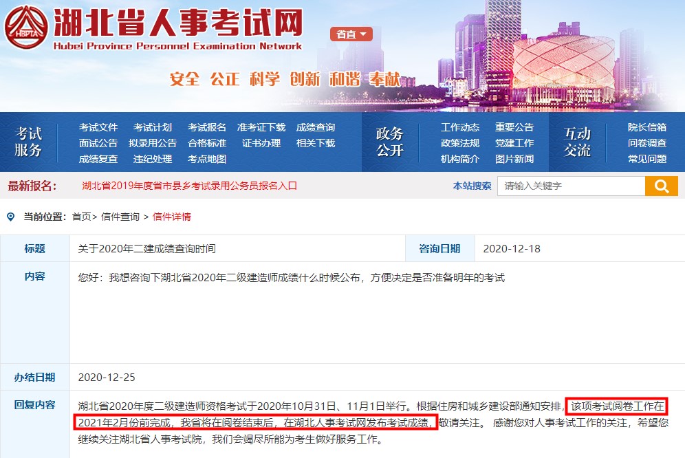 湖北2020年二級建造師考試成績查詢時間預(yù)計為2021年2月