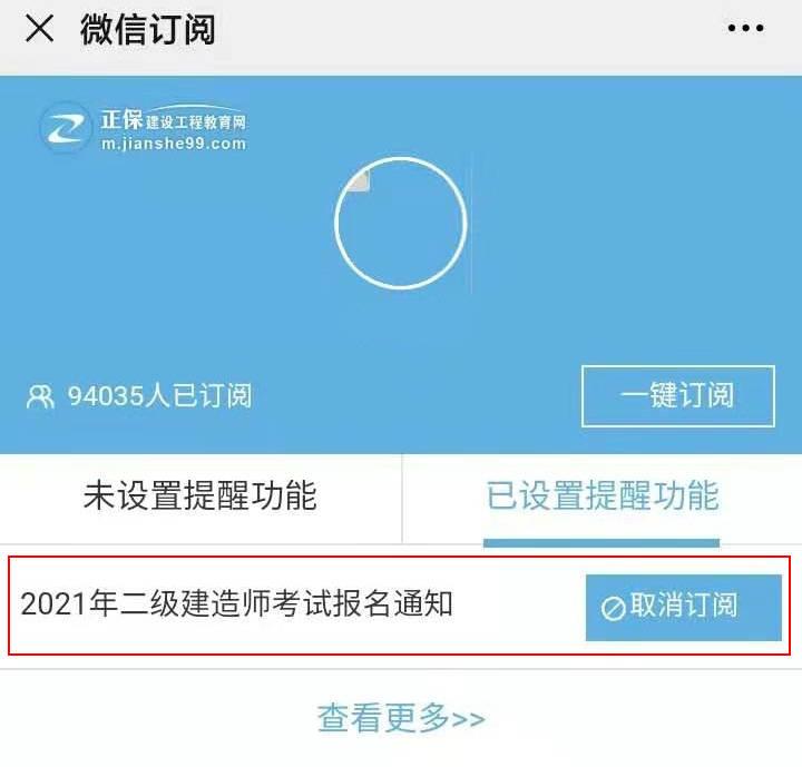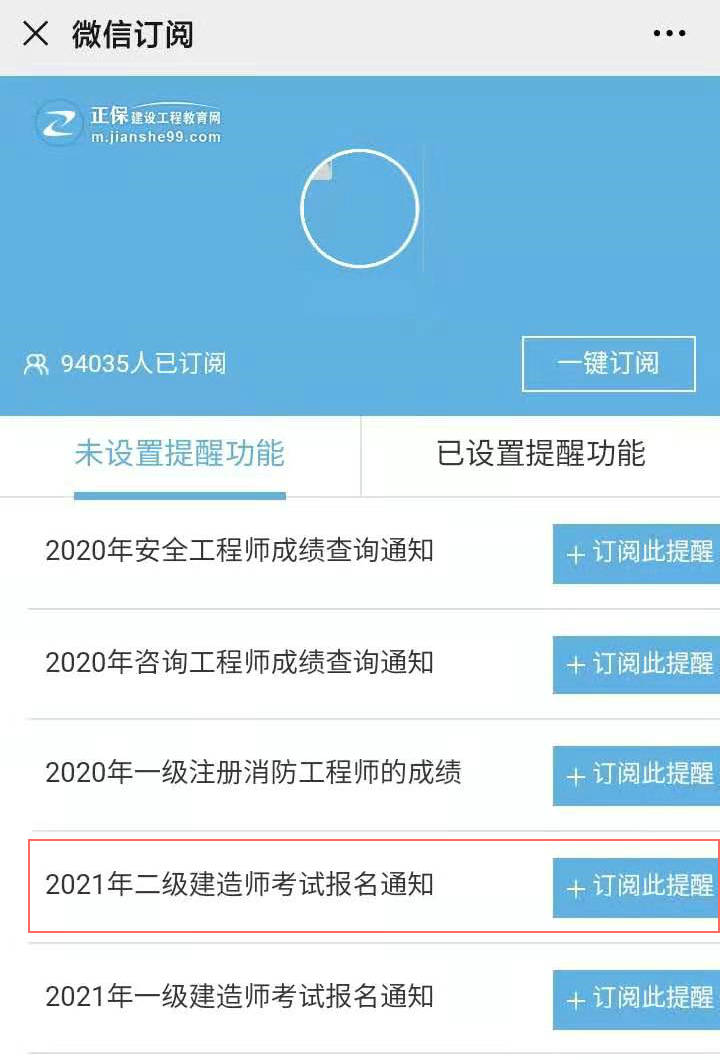 第三步:選擇“2021年二級(jí)建造師考試報(bào)名通知”-訂閱此提醒