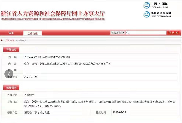 - · 浙江2021年二級(jí)建造師考試成績(jī)預(yù)計(jì)下周公布
