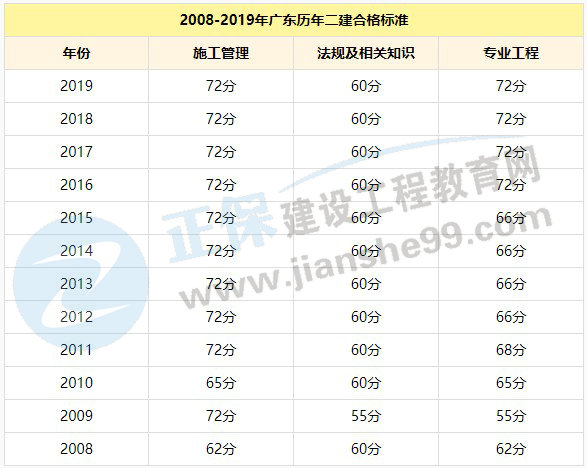 2020年廣東二級建造師考試合格分?jǐn)?shù)線是多少?查分過后,考生最關(guān)心的就是合格分?jǐn)?shù)線了。我們一起來看看廣東二級建造師考試歷年合格分?jǐn)?shù)線,預(yù)計(jì)2020年廣東二級建造師考試合格分?jǐn)?shù)線與往年持平。