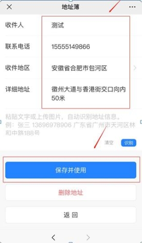 (4)填寫收件地址