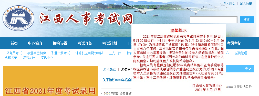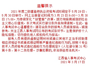 江西人事考試網(wǎng)2021年二級建造師考試報(bào)名溫馨提示