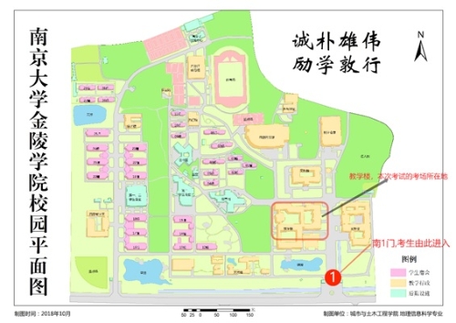 請考生從位于南京市建鄴區(qū)黃山路58號的學(xué)校南門進(jìn)校。