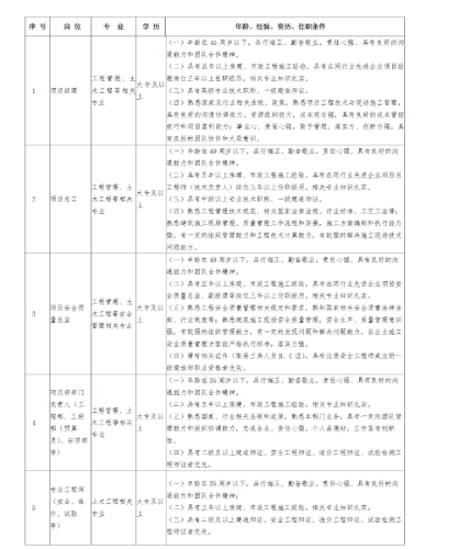 項目經(jīng)理2名,項目總工程師2名,項目安全質(zhì)量總監(jiān)1名,工程部長2名,項目工經(jīng)部長2名,項目物機部長2名,項目安質(zhì)部長1名。
