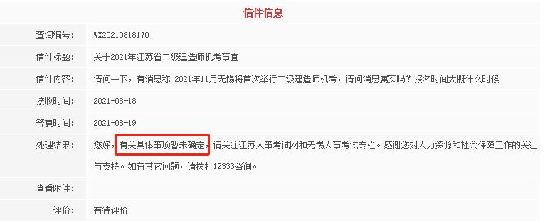 信件內(nèi)容:請問一下,有消息稱:2021年11月無錫將首次舉行二級建造師機(jī)考,請問消息屬實(shí)嗎?報名時間大概什么時候?