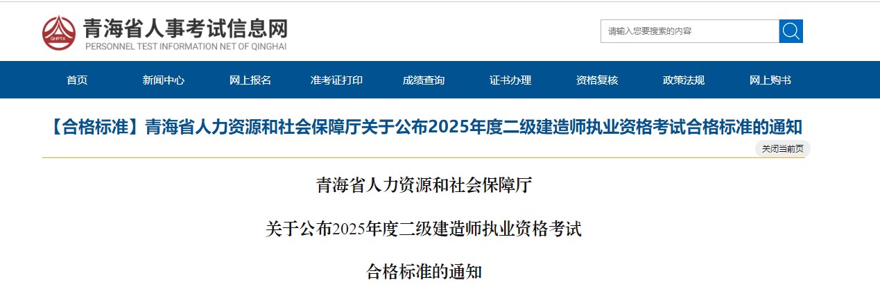 青海關(guān)于公布2025年度二級建造師執(zhí)業(yè)資格考試合格標(biāo)準(zhǔn)的通知