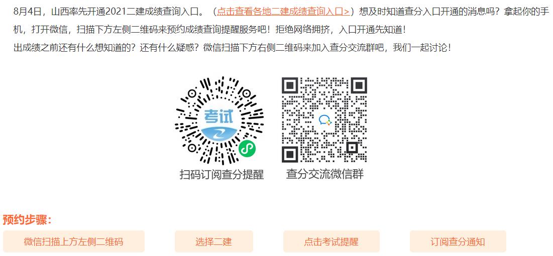 更多成績查詢問題請關(guān)注各省的人事考試中心網(wǎng)站成績查詢欄目即可,亦可關(guān)注網(wǎng)校二級建造師頻道成績查詢欄目信息。