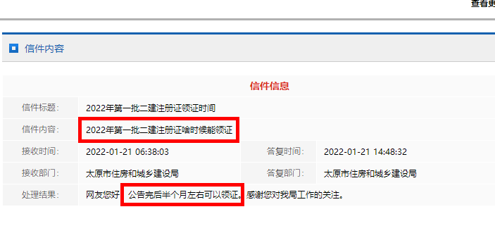 太原住建廳回復(fù) : 2022年第一批二建注冊(cè)證領(lǐng)證時(shí)間