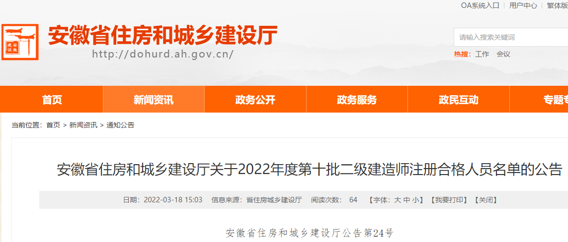 安徽關(guān)于2022年度第十批二級建造師注冊合格人員名單的公告
