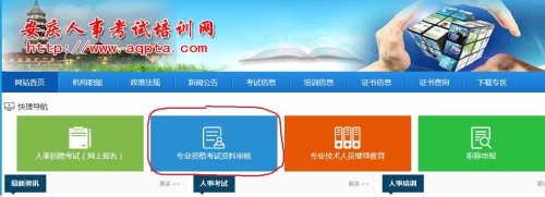 2、若審核未通過,需登陸安慶人事考試培訓網(wǎng),選擇“專業(yè)技術資格考試資料審核”板塊。