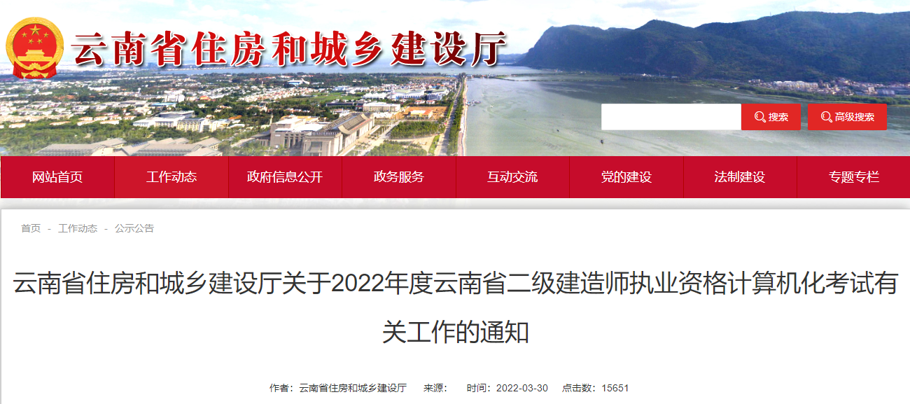 云南省住房和城鄉(xiāng)建設(shè)廳發(fā)布《關(guān)于2022年度云南省二級建造師執(zhí)業(yè)資格計算機(jī)化考試有關(guān)工作的通知》,云南2022年二級建造師考試形式為機(jī)考,二建報名時間為4月1日9:00-4月15日17:00,詳情如下: