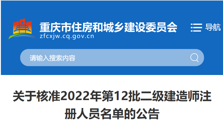 重慶關(guān)于核準(zhǔn)2022年第12批二級建造師注冊人員名單的公告