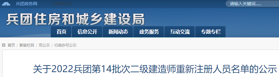 關(guān)于2022兵團(tuán)第14批次二級建造師重新注冊人員名單的公示