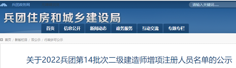 關(guān)于2022兵團(tuán)第14批次二級(jí)建造師增項(xiàng)注冊(cè)人員名單的公示