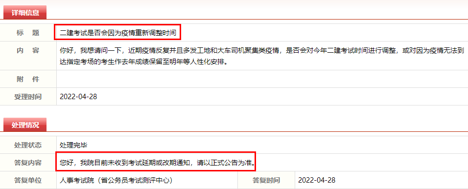 考生提問:你好,我想請問一下,近期疫情反復并且多發(fā)工地和大車司機聚集類疫情,是否會對今年二建考試時間進行調(diào)整,或?qū)σ驗橐咔闊o法到達指定考場的考生作去年成績保留至明年等人性化安排。