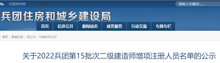 關(guān)于2022兵團第15批次二級建造師增項注冊人員名單的公示