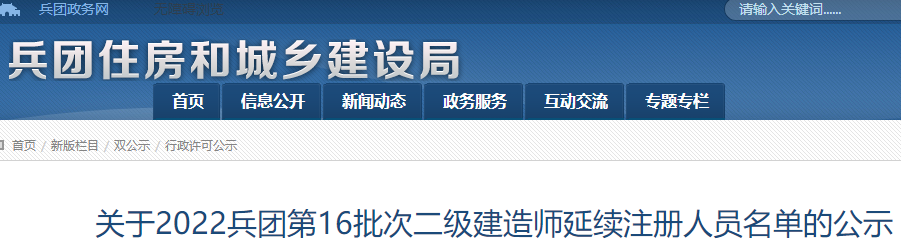 關(guān)于2022兵團(tuán)第16批次二級(jí)建造師延續(xù)注冊(cè)人員名單的公示