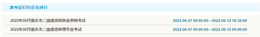 重慶2022二級建造師準考證打印時間: