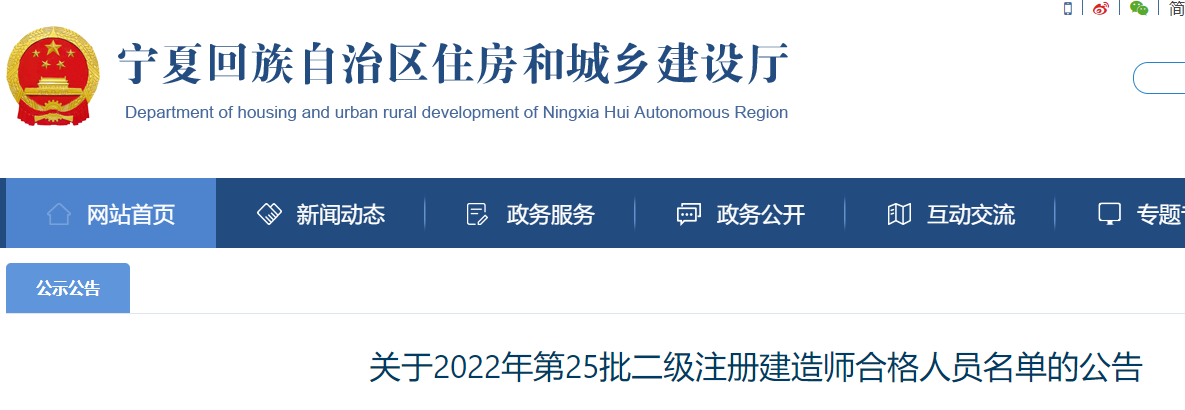 寧夏2022年第25批二級注冊建造師合格人員名單的公告