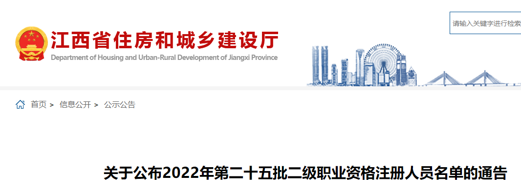 江西公布2022年第二十五批二級(jí)建造師注冊(cè)人員名單的通告