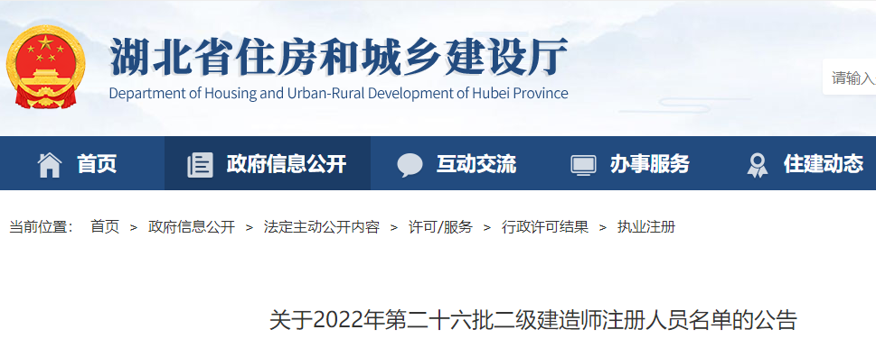湖北關(guān)于2022年第二十六批二級(jí)建造師注冊(cè)人員名單的公告