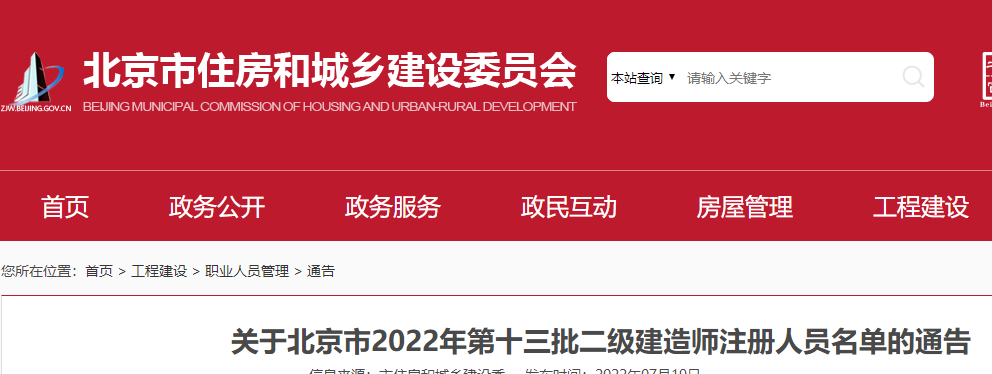 北京市2022年第十三批二級(jí)建造師注冊(cè)人員名單的通告