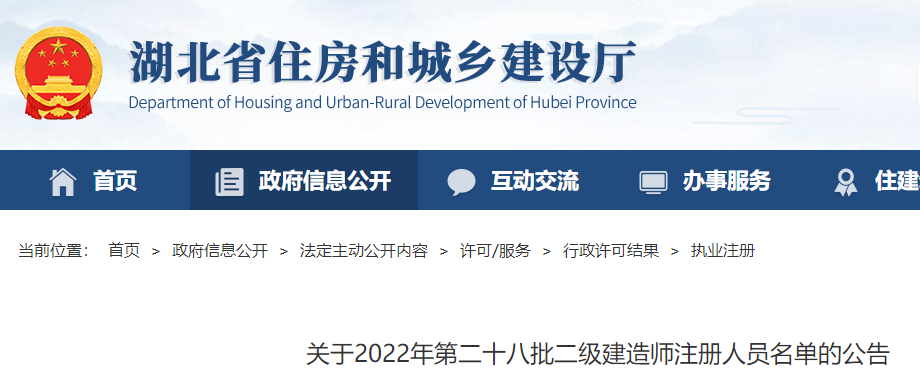 湖北關(guān)于2022年第二十八批二級(jí)建造師注冊(cè)人員名單的公告
