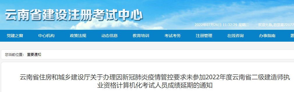 云南省住房和城鄉(xiāng)建設(shè)廳關(guān)于辦理因新冠肺炎疫情管控要求未參加2022年度云南省二級建造師執(zhí)業(yè)資格計算機化考試人員成績延期的通知