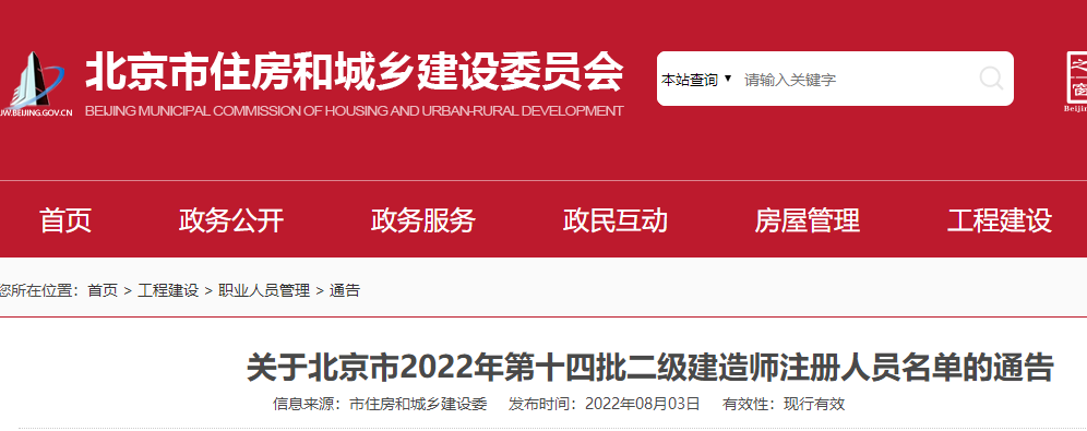北京市2022年第十四批二級(jí)建造師注冊(cè)人員名單的通告