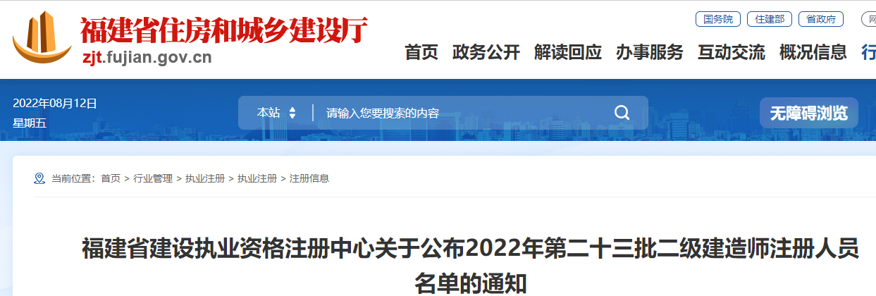 福建省公布2022年第二十三批二級建造師注冊人員名單的通知